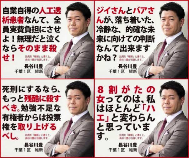 一見、小さな問題に見えるが、谷川元府議はこの件で日本維新の会から除名され、妻とも離婚。社会的に抹殺された。
